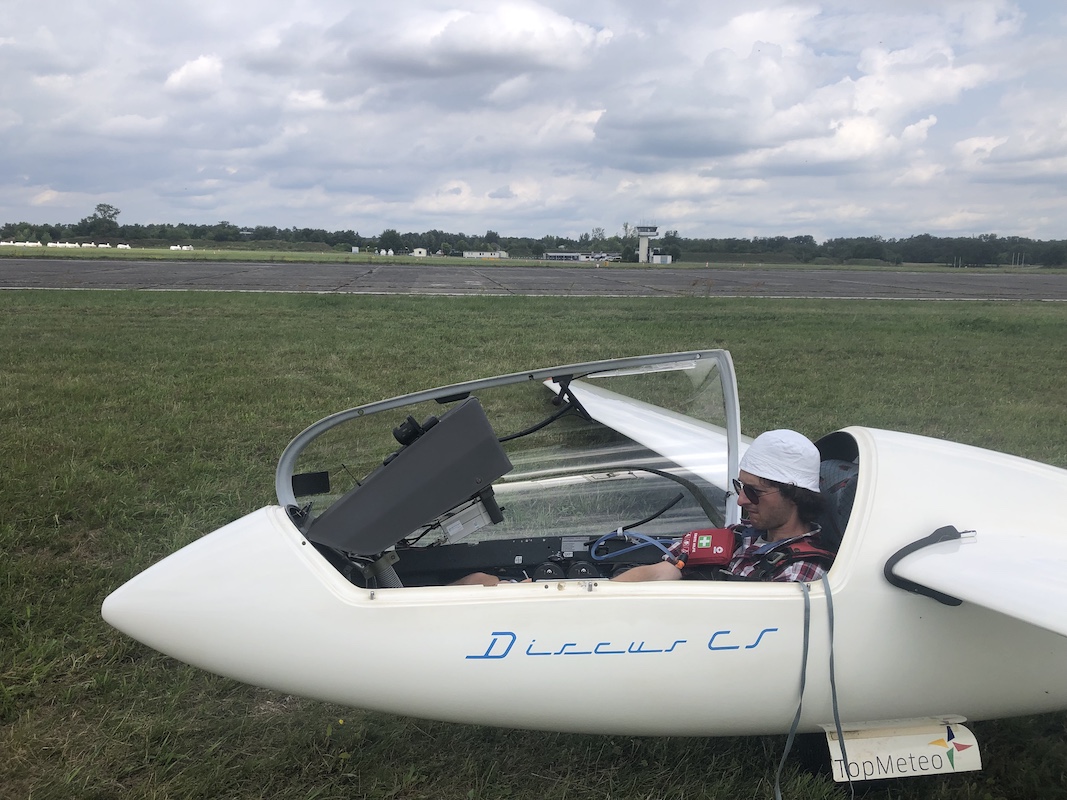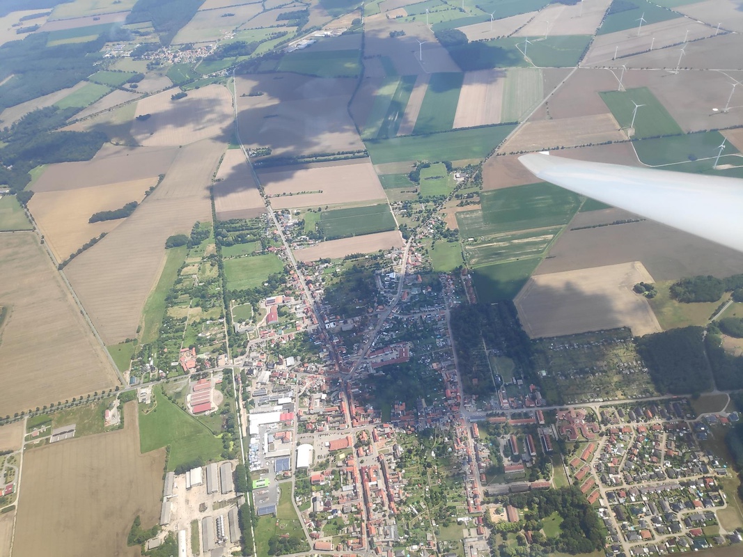 Angereist bin ich schon einen Tag früher, um das gute Wetter vor Wettbewerbsbeginn noch nutzen zu können. Am Trainingstag konnte ich dann gleich einen Schenkel nach Süden, in Richtung Magdeburg, fliegen. Auf dem Rückweg machte mir allerdings der starke Gegenwind – 30 bis 40 km/h – zu schaffen, sodass ich wieder in Stendal landen musste. Die Startwinden machten dort gerade Mittagspause, ich übte mich in Geduld. Als ich schließlich die Aufgabe begann, war ich schon über eine Stunde hinter meinem ursprünglichen Zeitplan. Die aufziehende Abschirmung machte die Thermik schwächer, der Gegenwind tat den Rest: die erste Außenlandung folgte geschwind.